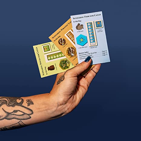 Includes 5 novel scenarios, each of which builds upon your previous experience. All are easy to learn, rich in character, and lots of fun. In each, you explore an unknown sea by ship and build settlements on the discovered islands. Scenario 1 (Land Ho!) introduces you to valuable harbor settlements, shipbuilding, exploration, and overseas settlement-the most important basic rules of this expansion. Each subsequent scenario introduces a new mission and its simple new rules. The game culminates in Scenario 5 (Explorers & Pirates), which incorporates all of these very rich new themes in a diverse and exciting campaign of bold exploration and piracy! A game Expansion for 3-4 players ages 12 and older. Explore Catan! Build harbor settlements, ships, settlers, and sailing crews and set out across mysterious seas in search of new lands, spices, fish, and gold fields. Note: This is not a complete game! Requires Settlers of Catan basic game to play.