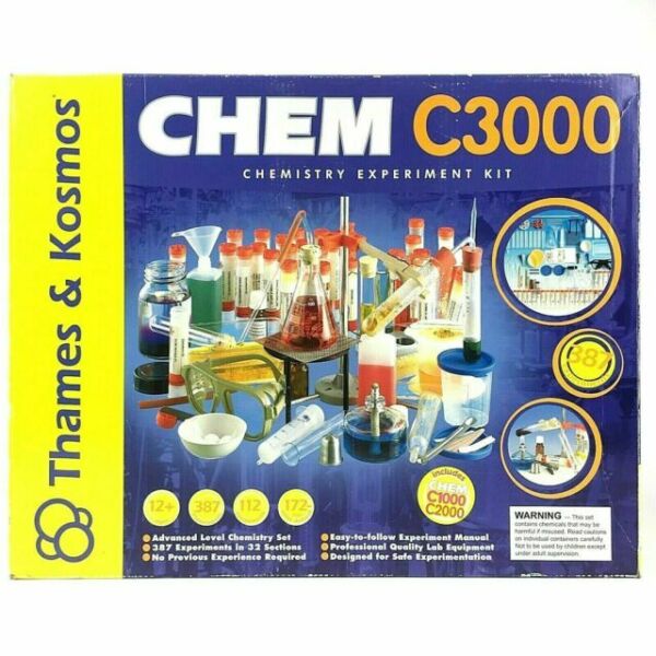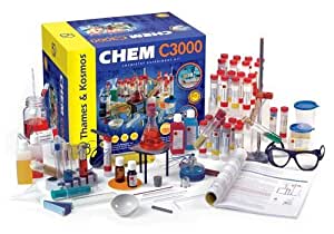 CHEM C3000 is the ultimate chemistry set. This kit includes all of the components from CHEM C2000, plus dozens of additional tools and chemicals, and 100 additional experiments, for a total of more than 333 experiments. The 192-page, full-color experiment manual is written at a more advanced level than the other CHEM kit manuals. You could call it a textbook, but the manual is too much fun to make that comparison. CHEM C3000 has a similar hands-on approach to teaching chemistry as our other CHEM kits, but also teaches more advanced topics such as chemical equations, atomic structures, and the periodic table. These concepts are critical to continued study of chemistry. CHEM C3000 is an excellent preparation for high-school level chemistry.