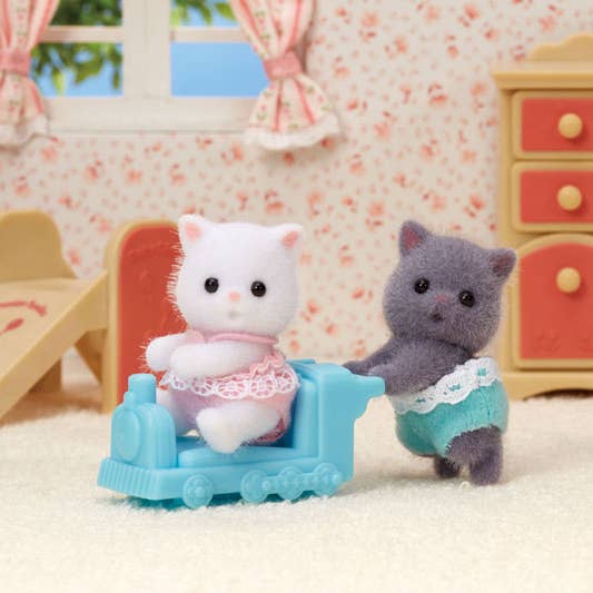 Calico twins include flocked figures that are soft to the touch and perfectly miniature for little hands. Both twins are dressed in removable detailed clothing.