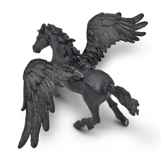 Twilight Pegasus carries on the tradition of brave flying horses, returning from the stars to the Earth as a steed for the greatest champions. Twilight Pegasus represents the more adventurous and daring side of Pegasus the flying horse. Scientific Name: Pegasus crepusculum Characteristics: Twilight Pegasus is a new generation of flying horse, returned to earth for brave challenges. Its wild nature is evident in the figure. Size and Color: The sleek black of Twilight Pegasus stands in stark contrast to the traditional Pegasus—steed of heroes. But this 5 ½-inch-long figure is a creature of the night, only leaving the sky in starless darkness. The Twilight Pegasus is part of the Mythical Realms® collection All of our products are Non-toxic and BPA free