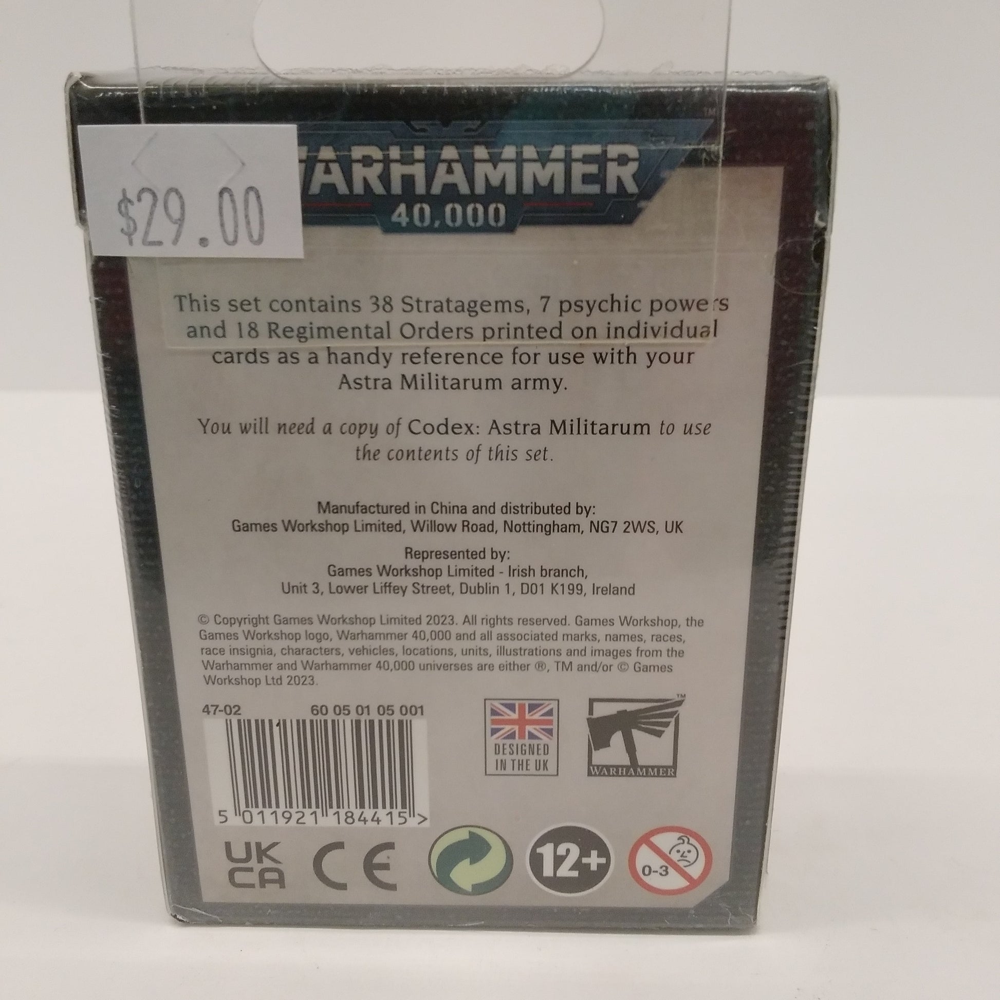 You will need a copy of the Warhammer 40,000 Core Book and Codex: Astra Militarum to make full use of these cards.