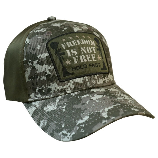 Freedom Is Not Free™ Tip your hat in honor of those who made the ultimate sacrifice in this “Freedom Is Not Free” Cap in Digital Camo by HOLD FAST®. Pray for those who gave their lives as members of the United States Armed Forces, and for their families. It is by their grace we enjoy the freedoms we hold dear, and they are courageous examples of God’s intention for us to love one another, even to the point of laying down our lives for the ones we love. Love of country is something we all share, and a diverse national community has been affected by our women and men offering the ultimate sacrifice. Thank a veteran every chance you get. Let them know they are in your prayers, and for the loved ones of service members who did not come home, let them know you will never forget. Hold Fast™ Adult Cap - Freedom Is Not Free™ * Color: Digital Camo * 100% Cotton * Velcro Closure * One Size Fits Most