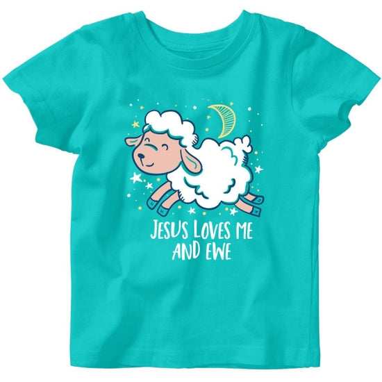 Lamb™ Wrap your little bundle of joy in cozy softness in this “Lamb” Baby T-Shirt in Caribbean Blue by Kerusso® Kidz. You have so much to teach your child! From learning how to sleep, to using a spoon, taking first steps, and babbling her first precious word, your baby is taking her cues from you, and learning from your patient, gentle teaching how to grow and thrive in this world. One of the most important things you can teach your little lamb is how much Jesus loves her! Jesus loves me and ‘ewe,’ and you can show your little one God’s love every day through patience, kindness, and ultimately — love. She is learning about love from you and will grow to know how much God loves her through your loving example and introduction to the Lord.