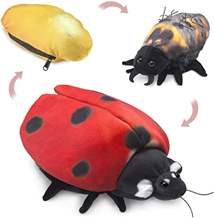 Play-based learning is FUNdamental with the three-stage reversible Folkmanis® Ladybug Life Cycle puppet. This wonderful soft toy demonstrates ladybug metamorphosis from egg to larvae to adult. Utilize zippers to move thru the stages and watch the natural curiosity of kids bloom as they learn while playing with this extraordinary scientific toy.